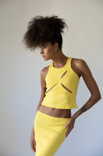 Elevate your basics collection with our Ariel Rib Top. This chic top is crafted from luxurious ribbed jersey, featuring a distinctive front cut-out design that adds an edgy touch to any outfit. Perfect for diverse occasions, this top combines elegance with a modern twist, making it a must-have for those looking to make a sophisticated statement.